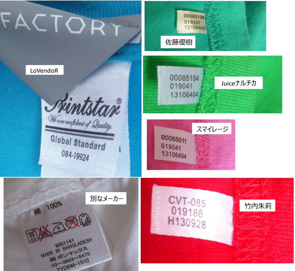 ・ハロープロジェクトでカラーTシャツを使用したグッズを販売する時にPrintstar製CVT-085を使用されることが多いが専属メーカーでも何でもない